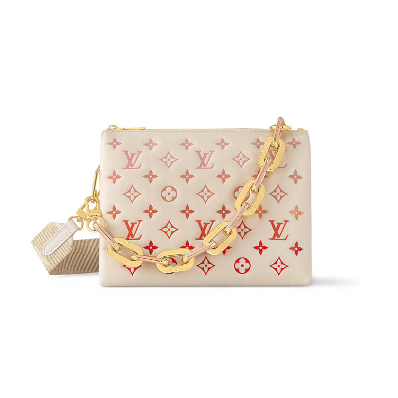 One of the stars of the Spring-Summer 2021 show, the Coussin PM handbag is made from Monogram-embossed puffy lambskin. It can be worn cross-body with the strap, slung over the shoulder by the short chain, or comfortably carried under the arm. The pillow-like Coussin bag brings style to the most simple look, giving it an effortless fashion-forward allure.