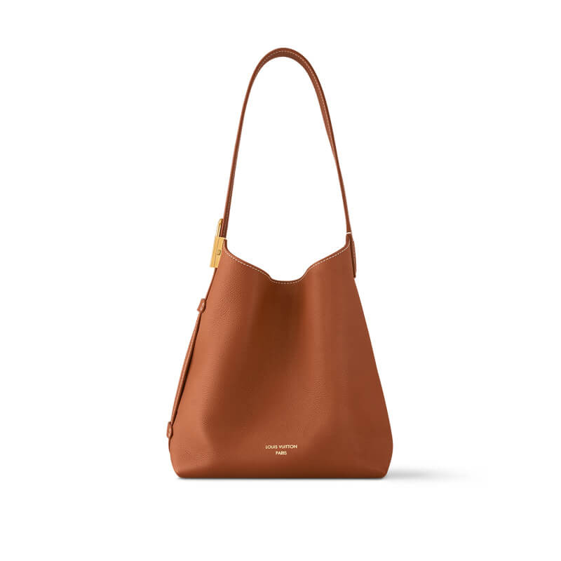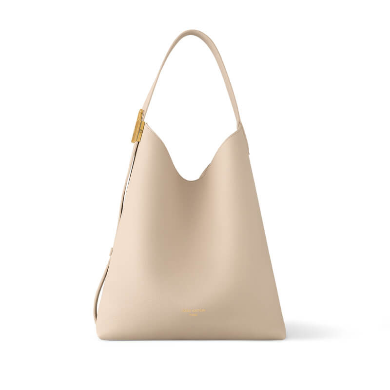 The S*pple Low Key Hobo PM bag is made from smooth calfskin with suede-calfskin lining. Its unique design includes a single strap that adjusts with a padlock buckle. The interior includes a removable zipped pouch in Monogram canvas to keep things organized. This bag can fit a compact wallet, large smartphone, keys, and other smaller belongings.
